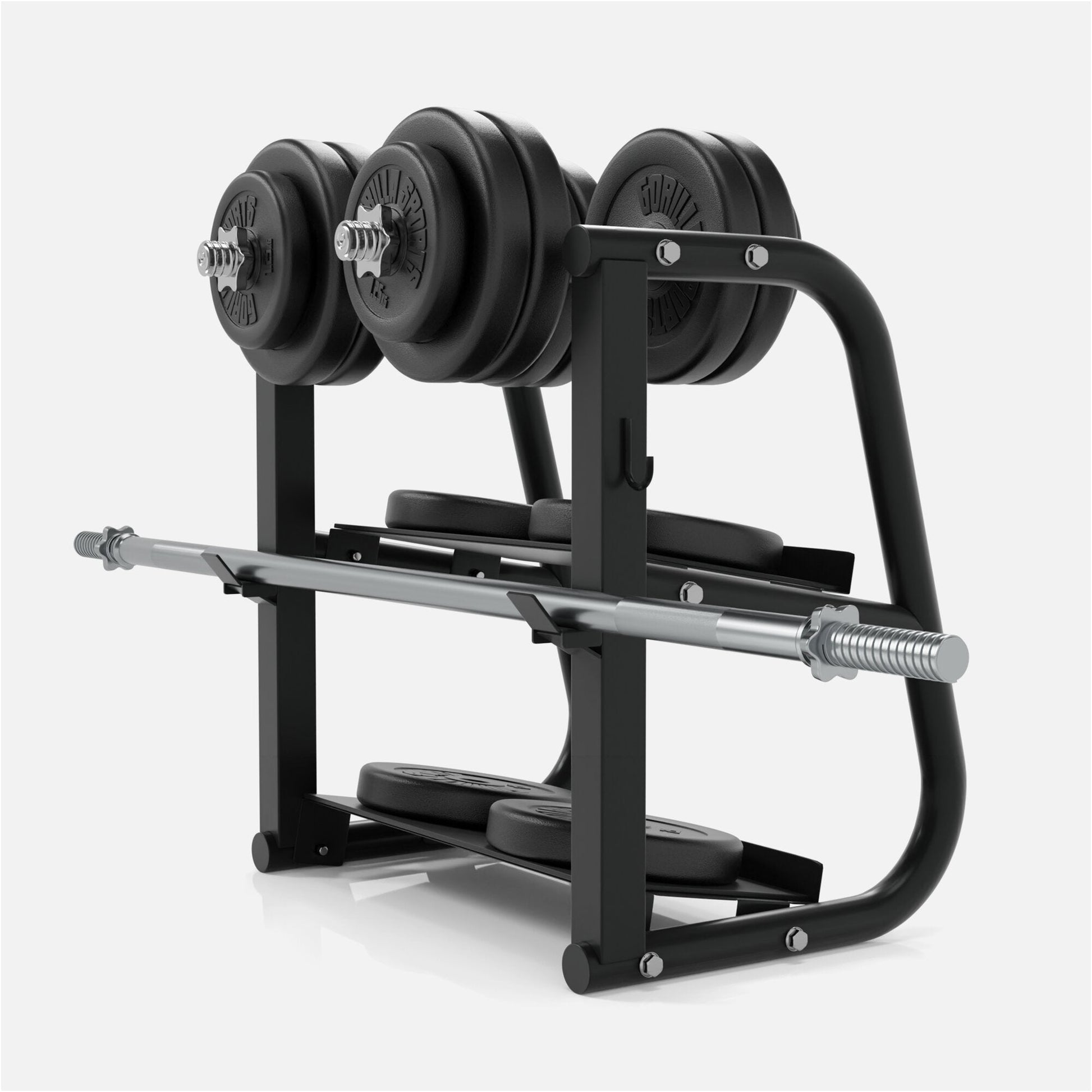 Organisiert Hanteln, Kettlebells, Langhanteln und weiteres Fitness-Equipment effizient – ideal, um den Trainingsbereich sauber und ordentlich zu halten.