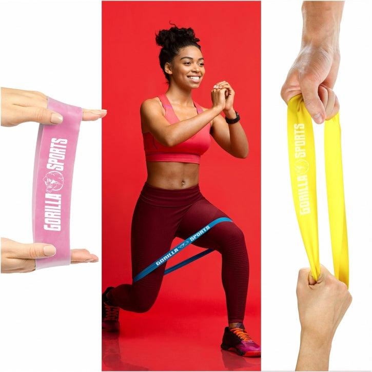 Fit durch Widerstand: Die Gorilla Sports Widerstandsbänder ermöglichen Dir in fünf Farben und Stärken ein abwechslungsreiches Fitnesstraining mit unterschiedlichen Widerständen: